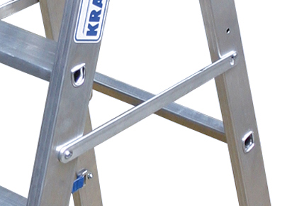 Защита от раздвижения Боковые планки предотвращают случайное раздвижение и складывание свободностоящей стремянки с роликами Krause STABILO 12 ступенек 124678. |
