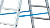 Безопасная конструкция Специальные стягивающие ремни надежно удерживают две секции двусторонней лестницы с перекладинами Krause STABILO 2х8 перекладин 124920, не давая им разъезжаться. |