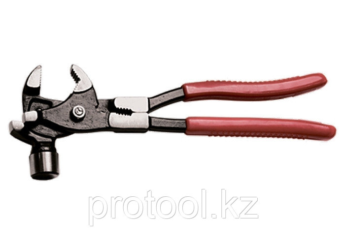 Многофункциональный комбинированный инструмент, включающий в себя возможности плоскогубцев, бокорезов, трубного захвата, молотка и других подобных функций. Изготовлен из хромванадиевой стали.